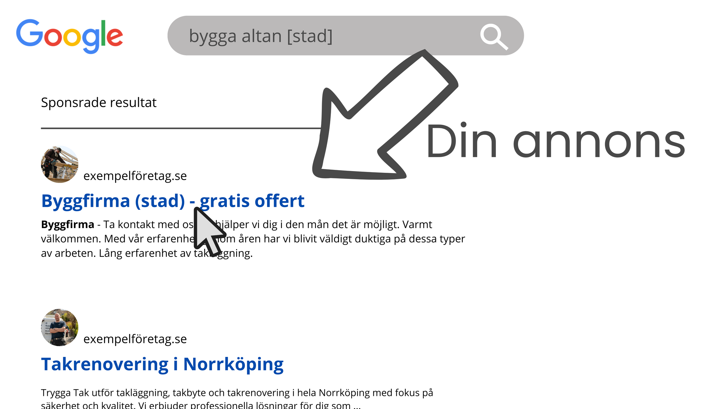 Ett enkelt och förutsägbart Google Ads-system som skapar ett stabilt inflöde av nya altanprojekt.